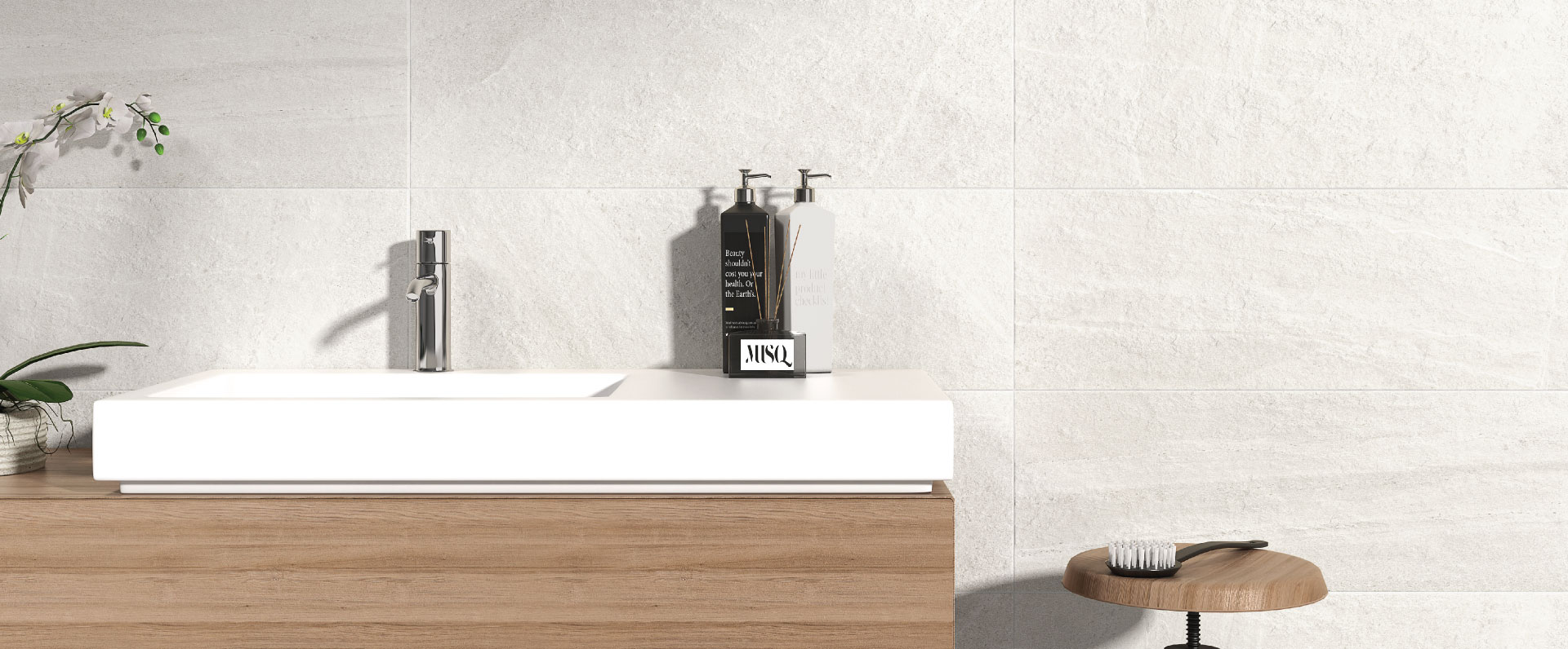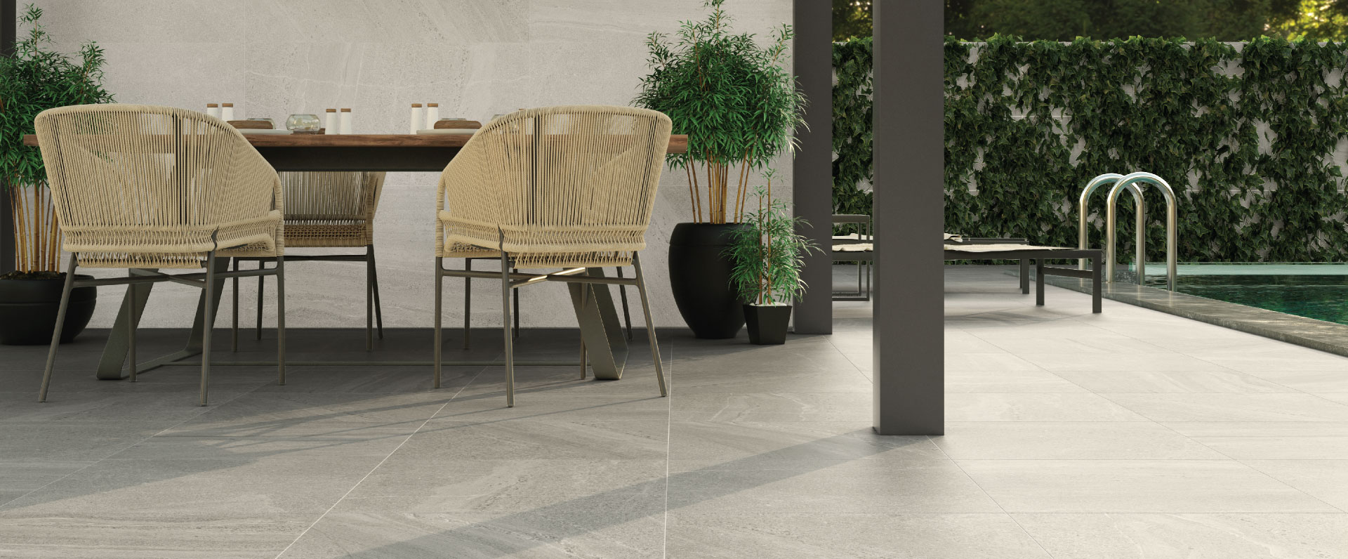 Waves of grainy silica sand fossilized for eternity in this magnificent stone commonly known as Basalt Evoque a rhythmic feeling of desert dunes dancing in the horizon. Bring this living collection into your home and it will bring character without monopolizing attention. Available in three beautiful combinable shades to create the right atmosphere with the latest in & out stoneware technology you can use one finish for the entire home.