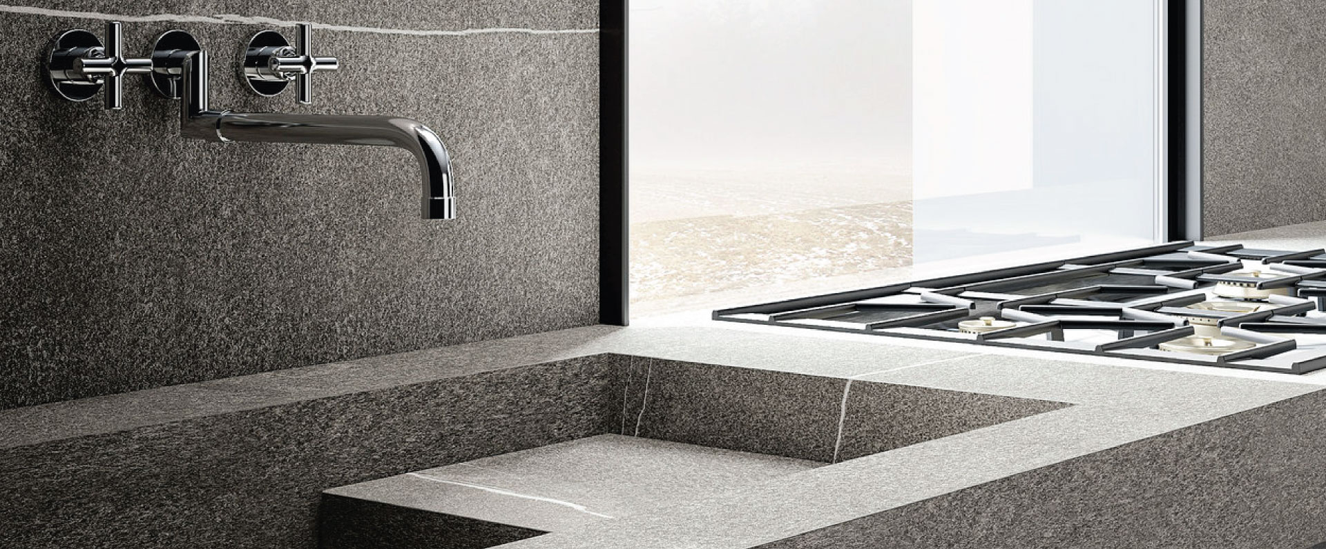 An elegant matt and textured interpretation of this age old north Italian stone with it’s long soft white veins presented in the traditional bush-hammered finish.