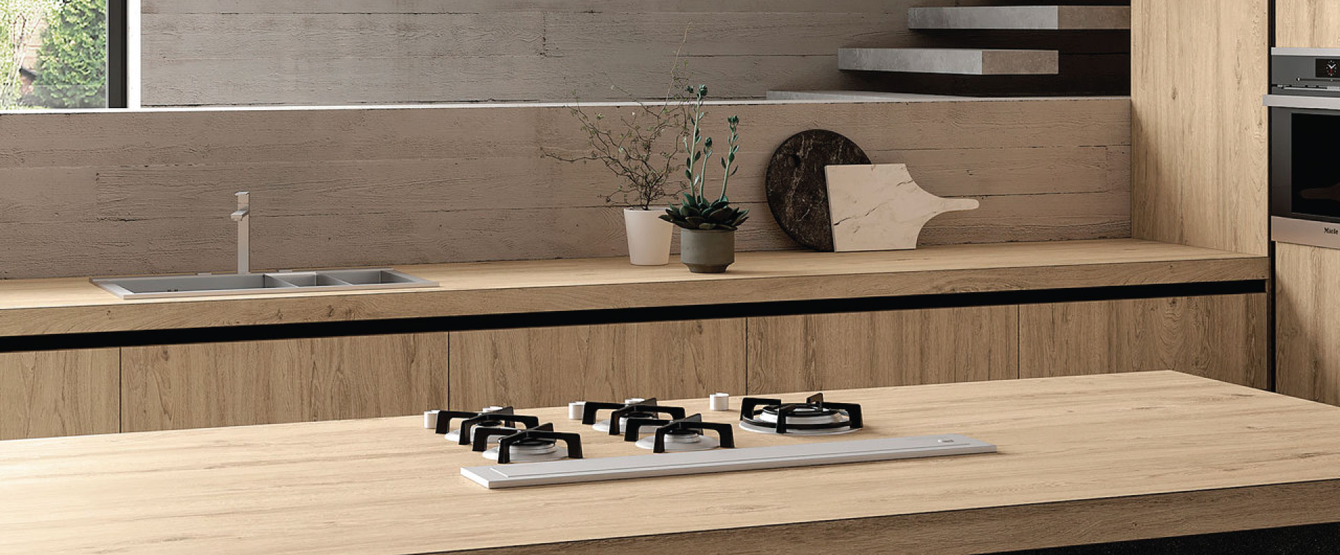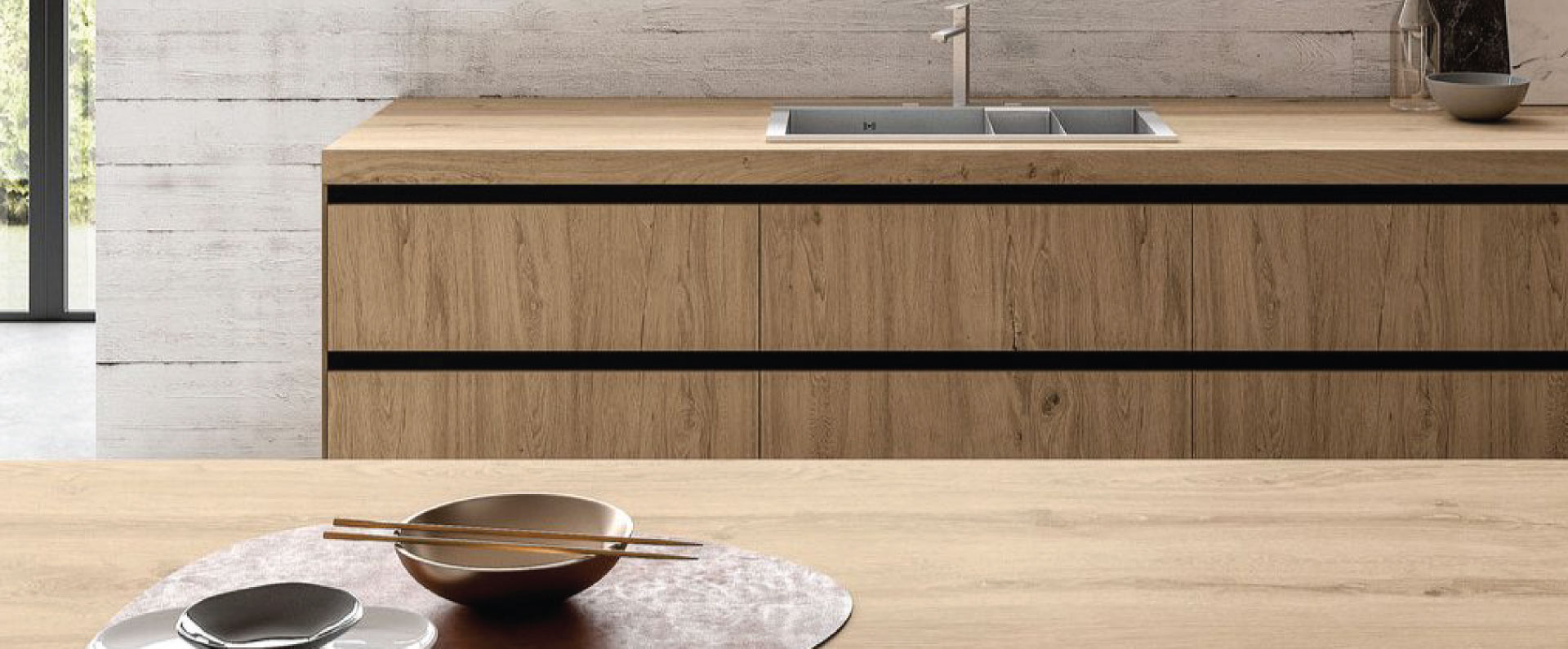 Wood effect countertop slabs that offer the beauty of wood with the peace of mind of porcelain.