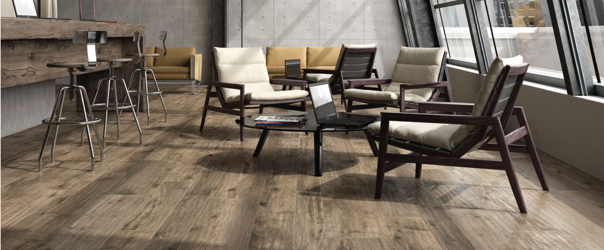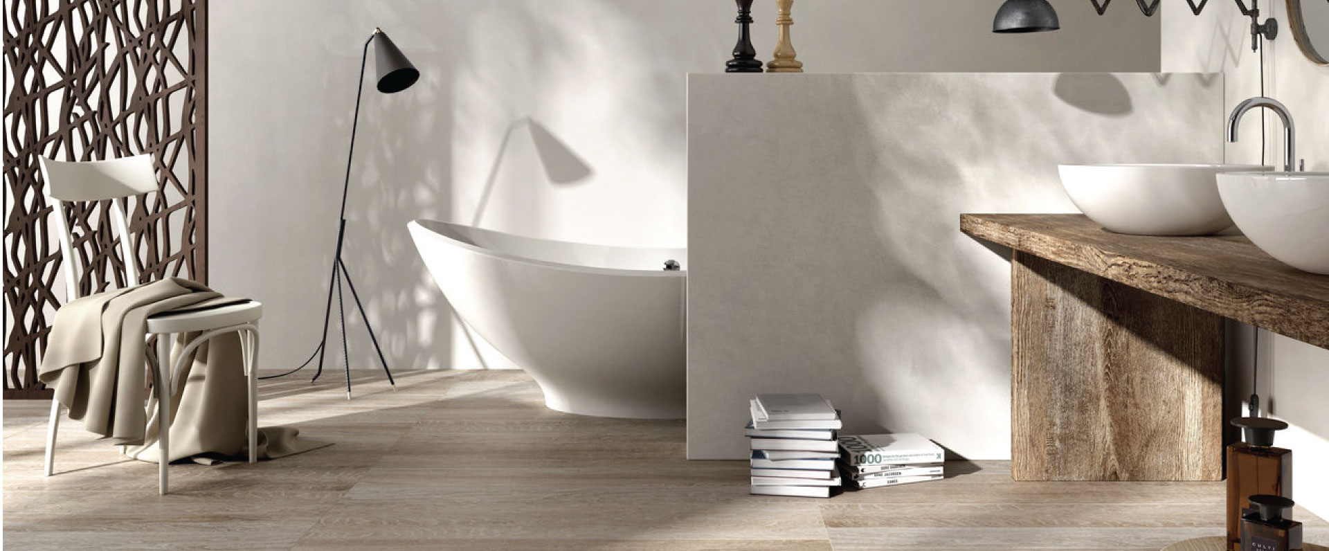Six Varieties with brown or neutral tones, inviting you to a wonderful getaway under the auspices of continuity and Innovation. The charm of wood is combined with the reliability of porcelain stoneware featuring the most advanced technical performance to create a collection with the versatility of natural materials, able to blend in with the most diverse interiors.