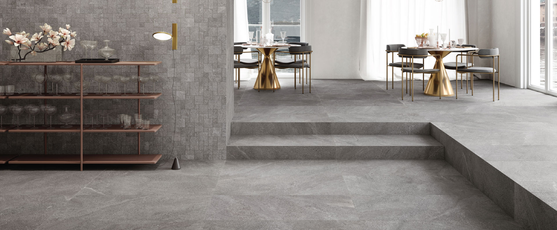 This collection offers the authentic feel of stone, with delicate vein patterns, small grains and sandy surfaces merge together in the Tune collection, which is available in both large and medium size formats up to a 120cmx 120cm.